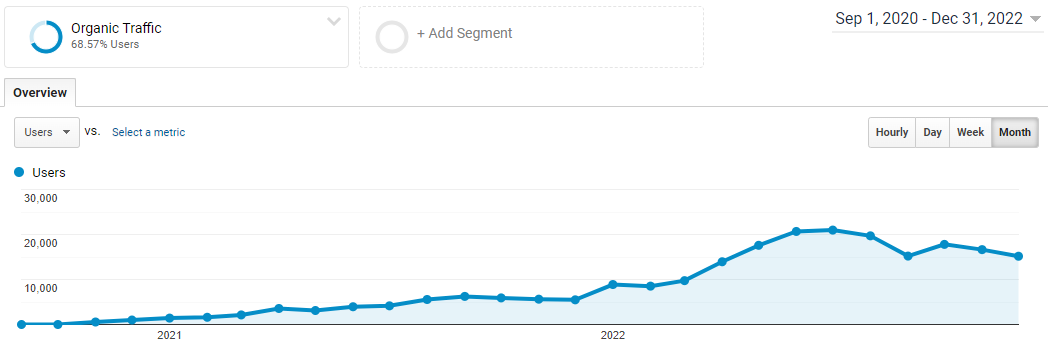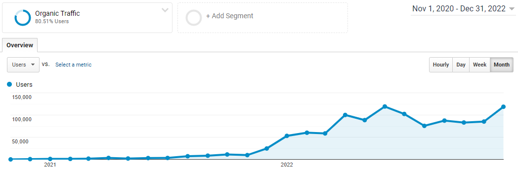 Comme vous pouvez le voir sur les 3 graphiques de Google Analytics ci-dessus, les résultats se font attendre tout en augmentant petit à petit lors des premiers mois pour les nouveaux sites. Et environ un trimestre pour un site déjà existant et avec du contenu.